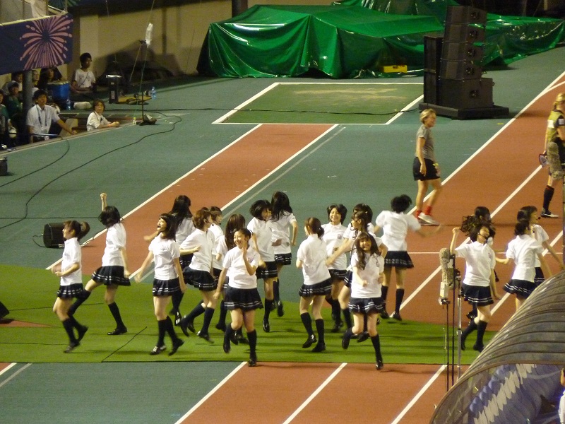 Dunkle Wolken ziehen vor dem Finale auf, und AKB48, die natürlich keinesfalls fehlen dürfen und die ich hiermit einmal häufiger live gesehen habe als der größte (ich gebe zu, gleichermaßen auch der einzige) AKB-Fan, den ich zu meinen Freunden zählen darf, 戈.