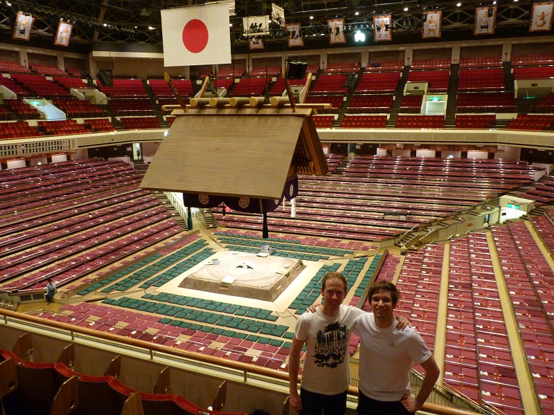 Nach all den Monaten bzw. gar Jahren endlich live bei einem der großen Sumo-Turniere! Und ich muß sagen, es war absolut beeindruckend. Kein Vergleich zu Eurosport. Vor lauter Angst, die Tickets an der Tageskasse (den schlechtesten Rang gibts nicht im Vorverkauf, was die kurzfristige Entscheidung überhaupt erst möglich gemacht hat…) könnten sofort ausverkauft sein waren wir dann auch schon morgens um acht Uhr vor Ort, angesichts des tatsächlichen Andrangs und des Turnierbeginns nicht vor elf Uhr im Nachhinein ein Fehler. Gelohnt hat sich's aber allemal! Dank an Bernd, Stefan und den alten japanischen Herrn zu unserer Rechten für den großartigen Tag. Schande über mein Haupt, sollte das mein letztes Turnier gewesen sein. Ein paar Eindrücke: