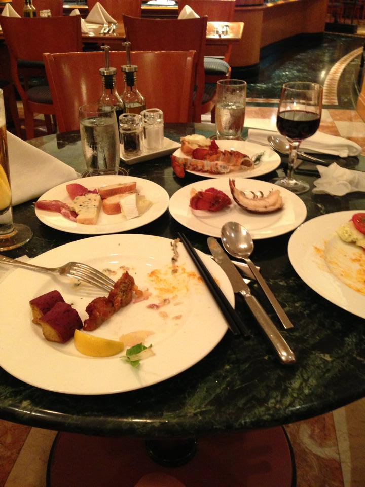 Am Montag habe ich mich dann im Hilton völlig überfressen. In mindestens sehr guter Gesellschaft, versteht sich. Es war großartig. Nach über einem Jahr wieder echten Käse, und Schinken, mit Antipasti~ Im Nachhinein hätte ich einfach fünfundzwanzig Teller davon essen sollen, wozu auch diese Bescheidenheit, hab mich aber vom restlichen Büffet verleiten lassen. In solchen Situationen ist der Chinese dann auch ein bißchen wie der gemeine Schwabe. Im Anschluß wird gemeinsam unter einer mittleren Magenzerrung gelitten.